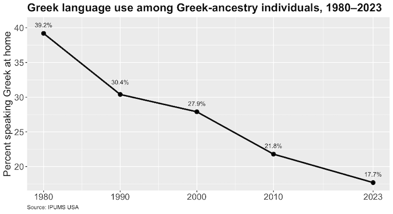 Greek Language Use among Greek-Ancestry Individuals, 1980–2023